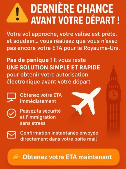 Voyagez au Royaume-Uni sans stress ! Obtenez votre ETA rapidement, même en urgence, pour seulement 29 €. ✅ Formulaire officiel instantané.